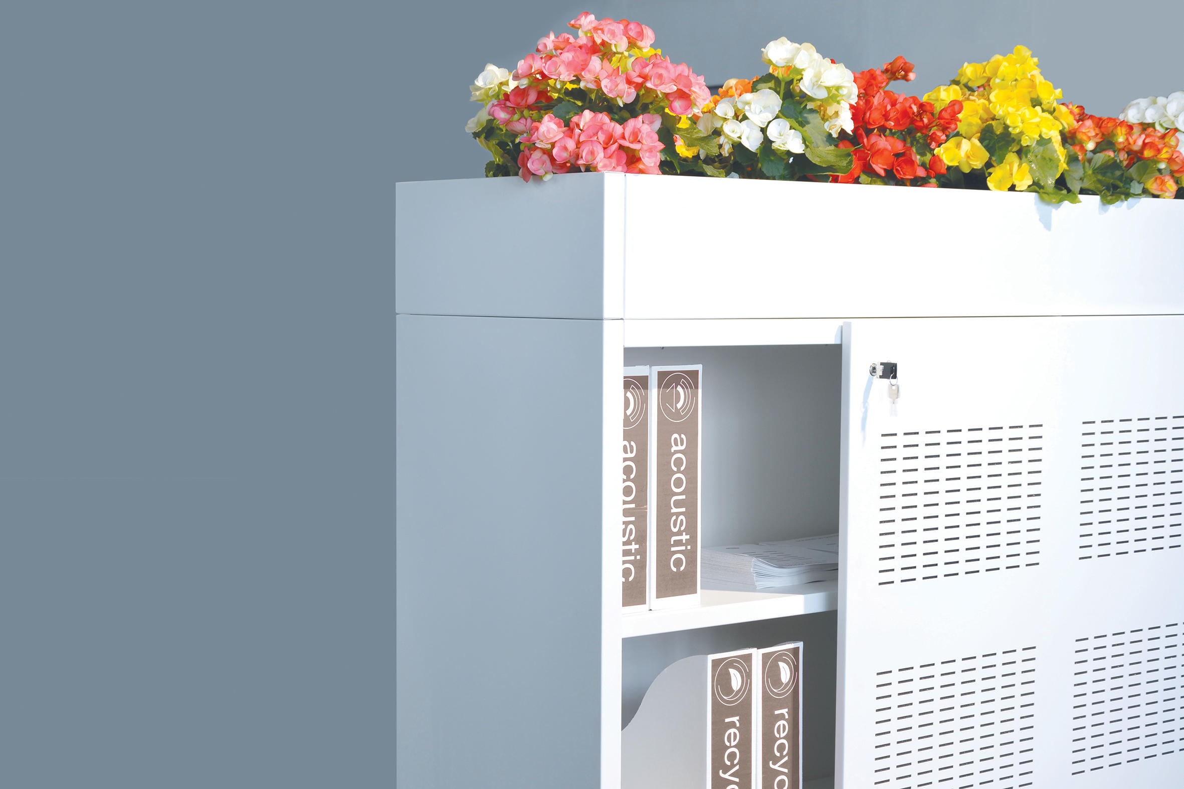 Breng de natuur naar uw kantoor en laat uw werkomgeving tot bloei komen met het plantenbak systeem voor op de akoestische Claudius schuifdeurkast. Geef uw medewerkers en bezoekers een verfrissende en stimulerende ervaring die hun welzijn en productiviteit zal verbeteren. Ontdek vandaag nog de mogelijkheden van groen in uw kantoor!